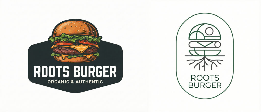 悪くはないけど、まだ「普通のハンバーガーのイラスト」だね。ここにコンセプト(野性)が感じられない。